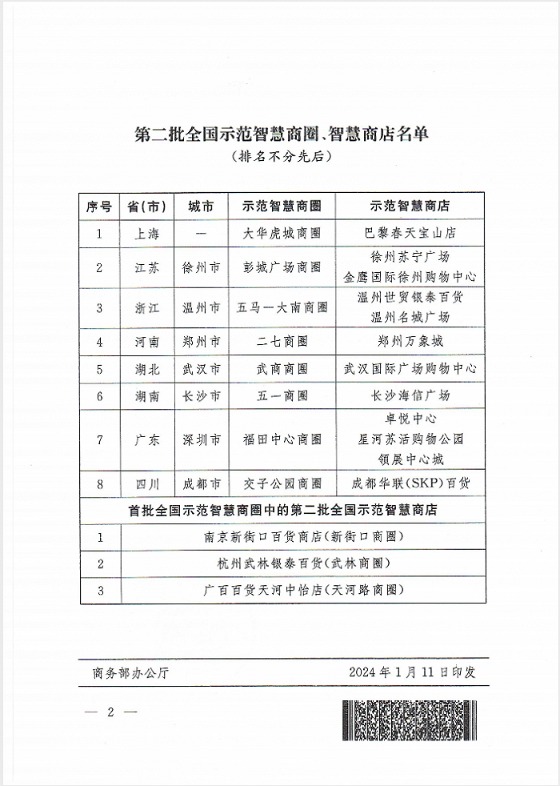 商务部公布第二批全国示范智慧商圈、智慧商店名单