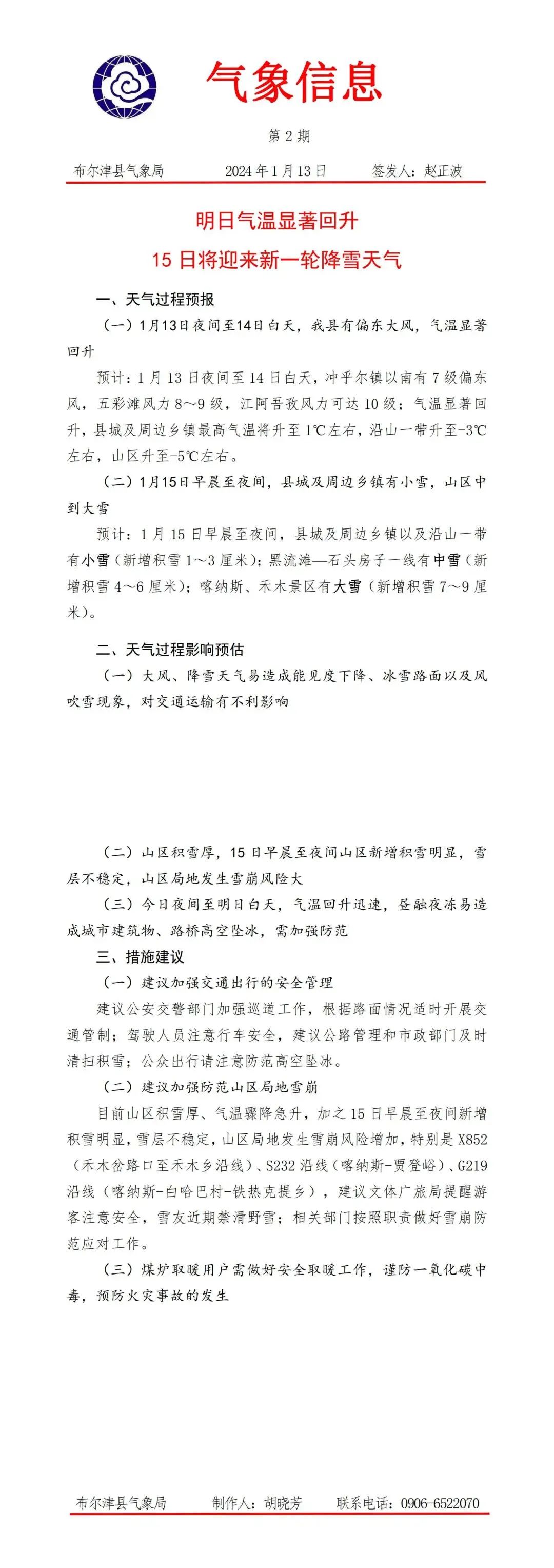 据喀纳斯景区公安局、布尔津气象局1月13日消息,近期,喀纳斯景区将迎来气温显著回升和新一轮降雪天气,道路通行条件下降,山区局部地区雪崩风险极高,给群众出行带来了诸多不便。为切实做好交通事故预防工作,保障人民群众生命财产安全,喀纳斯公安交警发布“两公布一提示”,请广大交通参与者密切关注天气变化和路况提示,合理规划出行时间及路线,安全文明出行。目前喀纳斯景区公安局交警大队持续对以下路段实行临时双向交通管制。